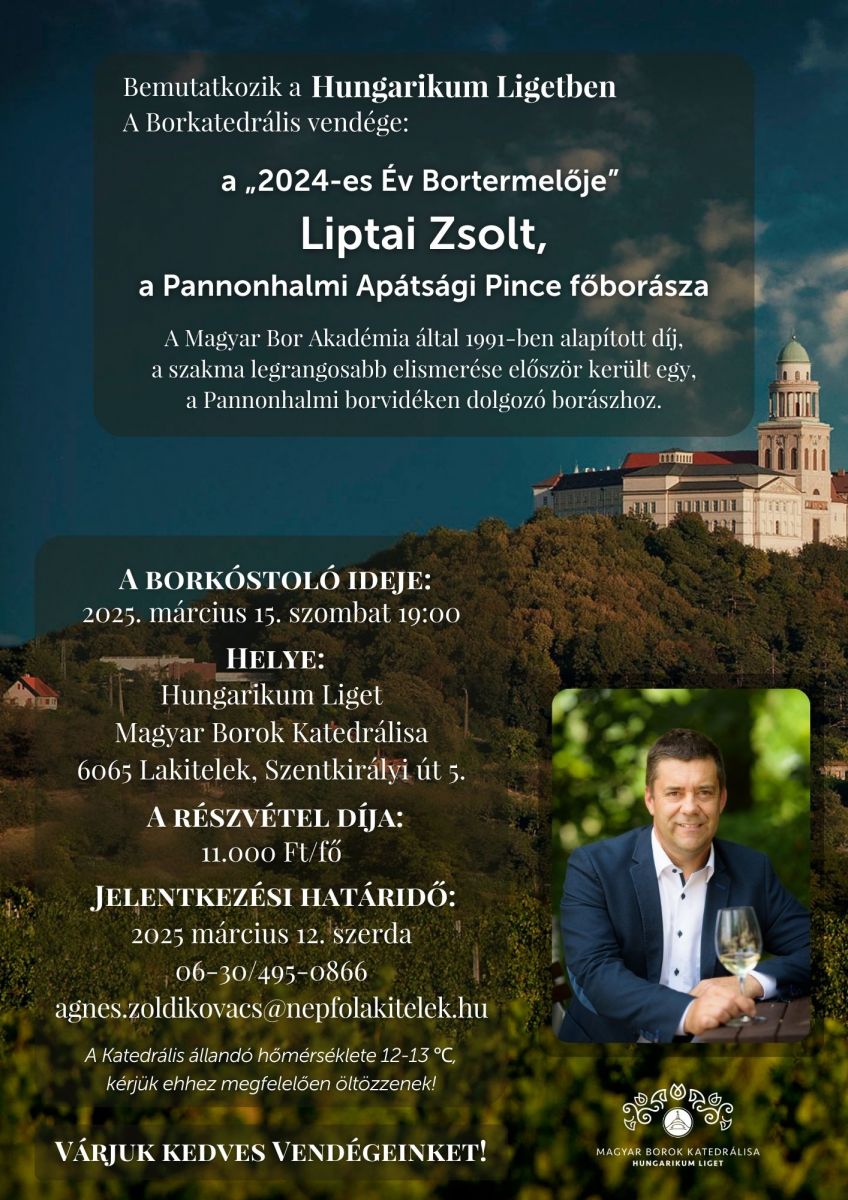 Szeretettel várjuk borkedvelő Vendégeinket március 15-én a Magyar Brok Katedrálisában, ahol bemutatkozik Liptai Zsolt, a 2024-es év bortermelője, a Pannonhalmi Apátsági Pince főborásza.