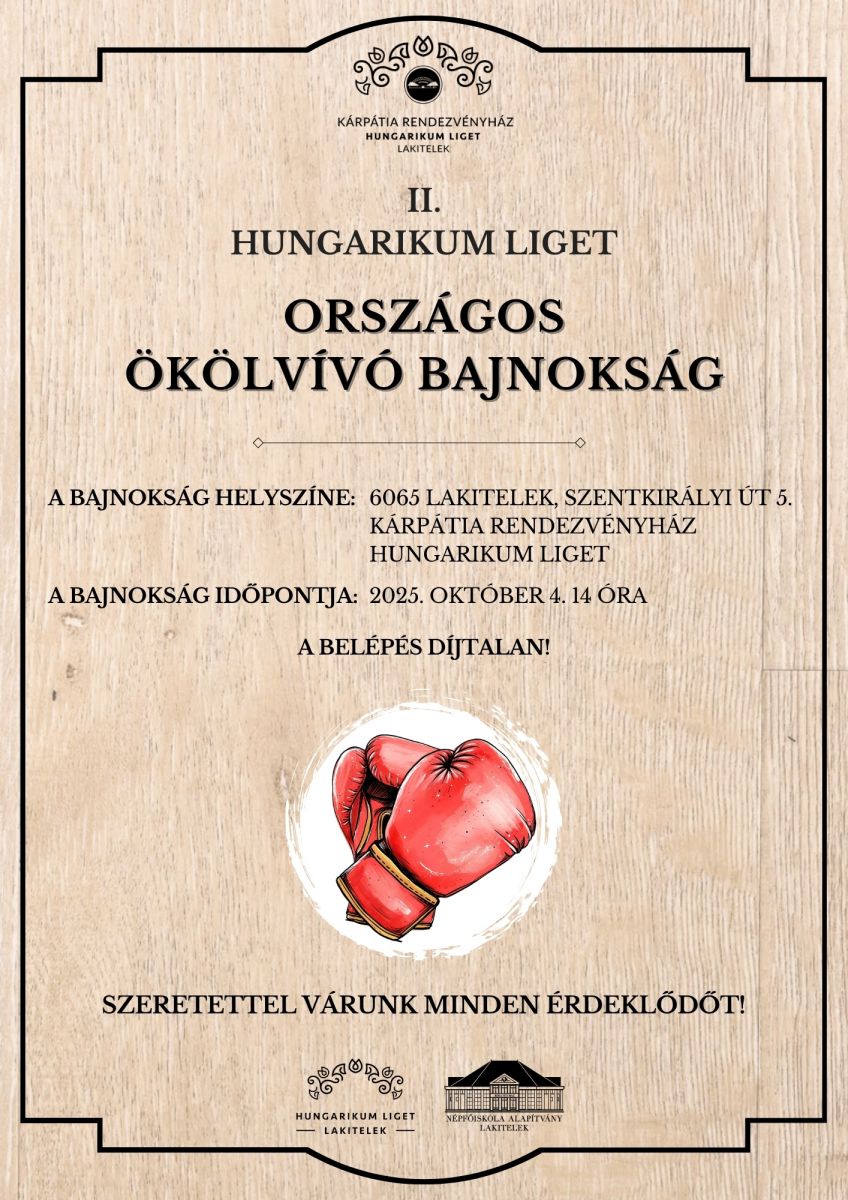 II. Hungarikum Liget Ökölvívó Bajnokság 2025. október 4-én, 14 órakor a Kárpátia Rendezvényházban. A belépés díjtalan!