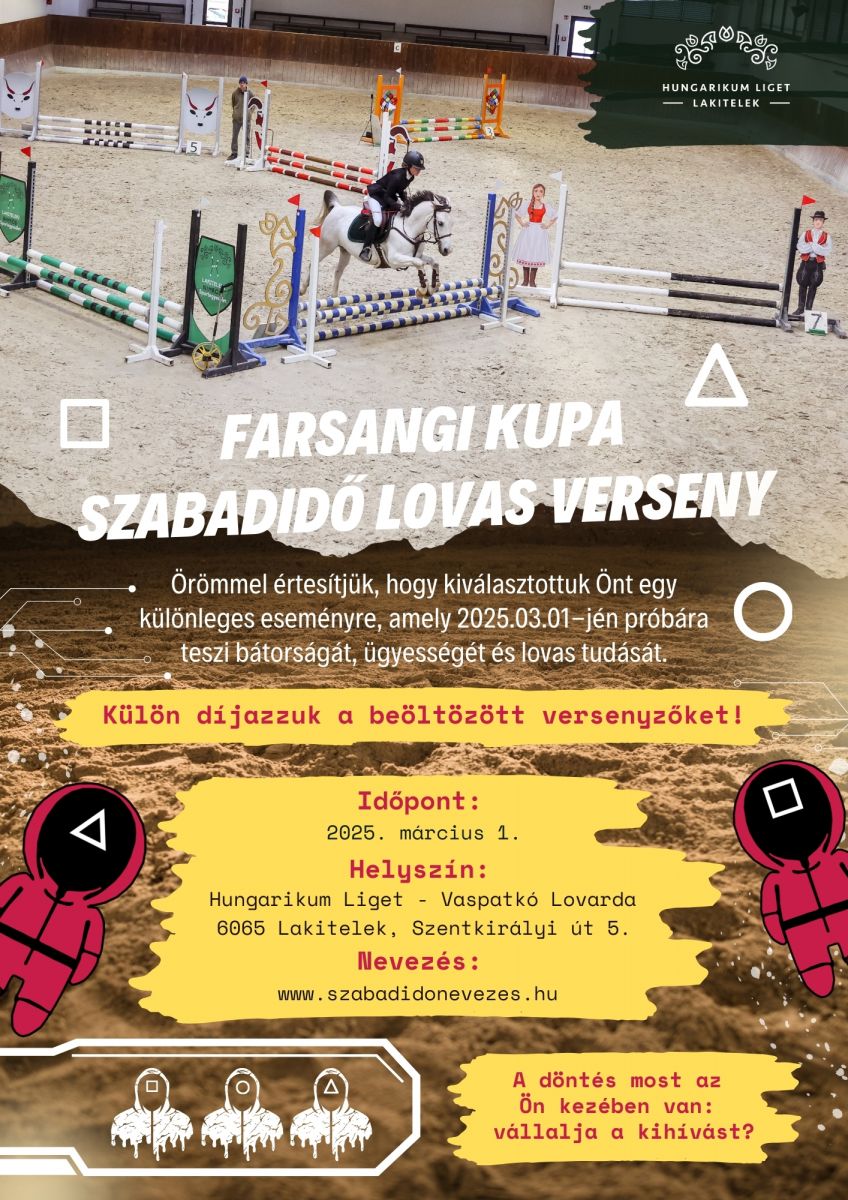 Örömmel értesítjük, hogy kiválasztottuk Önt egy különleges eseményre, amely 2025.03.01-jén próbára teszi bátorságát, ügyességét és lovas tudását.