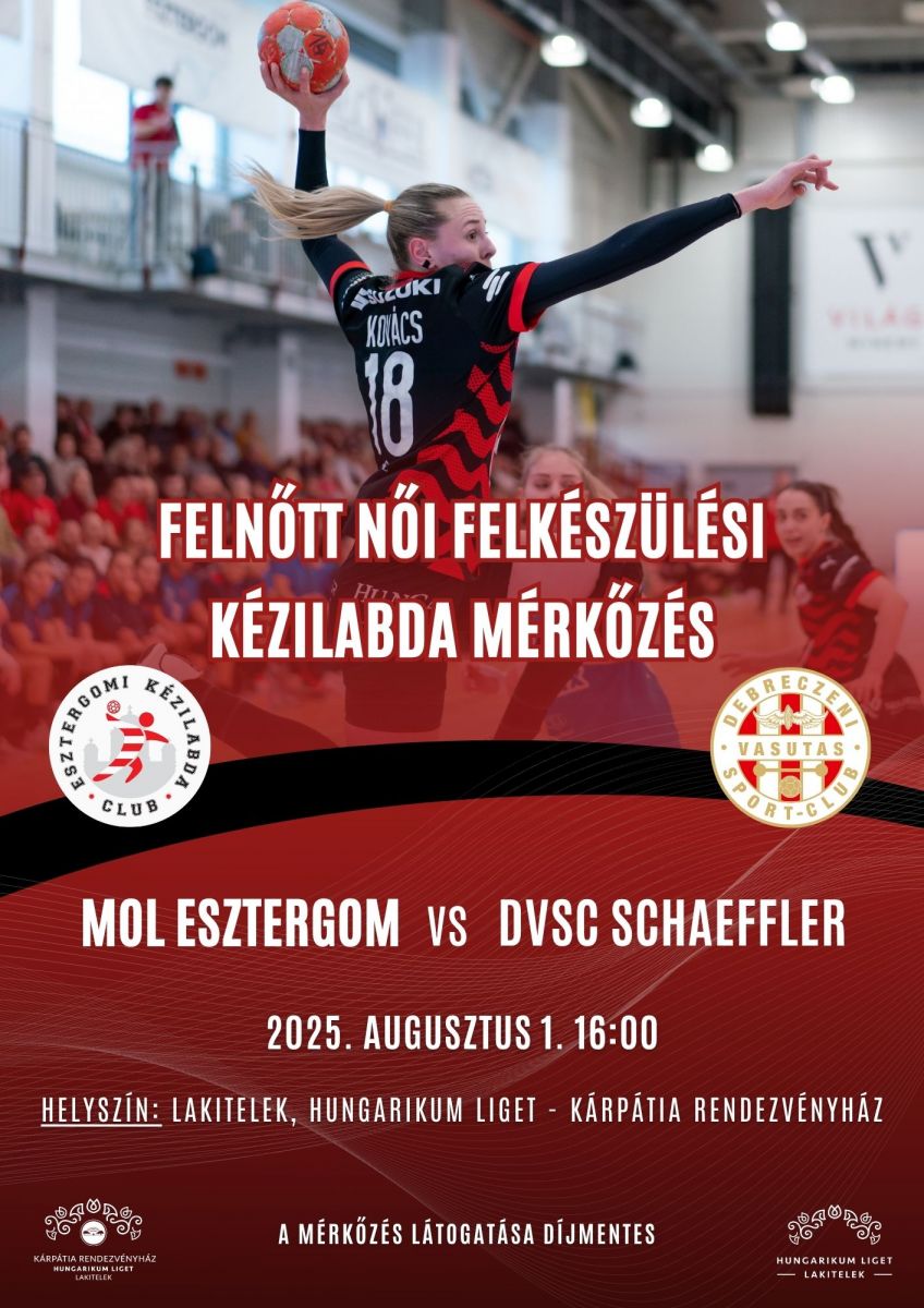 Izgalmas nyári sportélmény várja Lakiteleken! Augusztus 1-jén, pénteken 16:00 órától a felnőtt női kézilabda élvonal két csapata, az előző bajnokság harmadik helyezettje, a MOL Esztergom és a negyedik DVSC Schaeffler csap össze egy felkészülési mérkőzésen