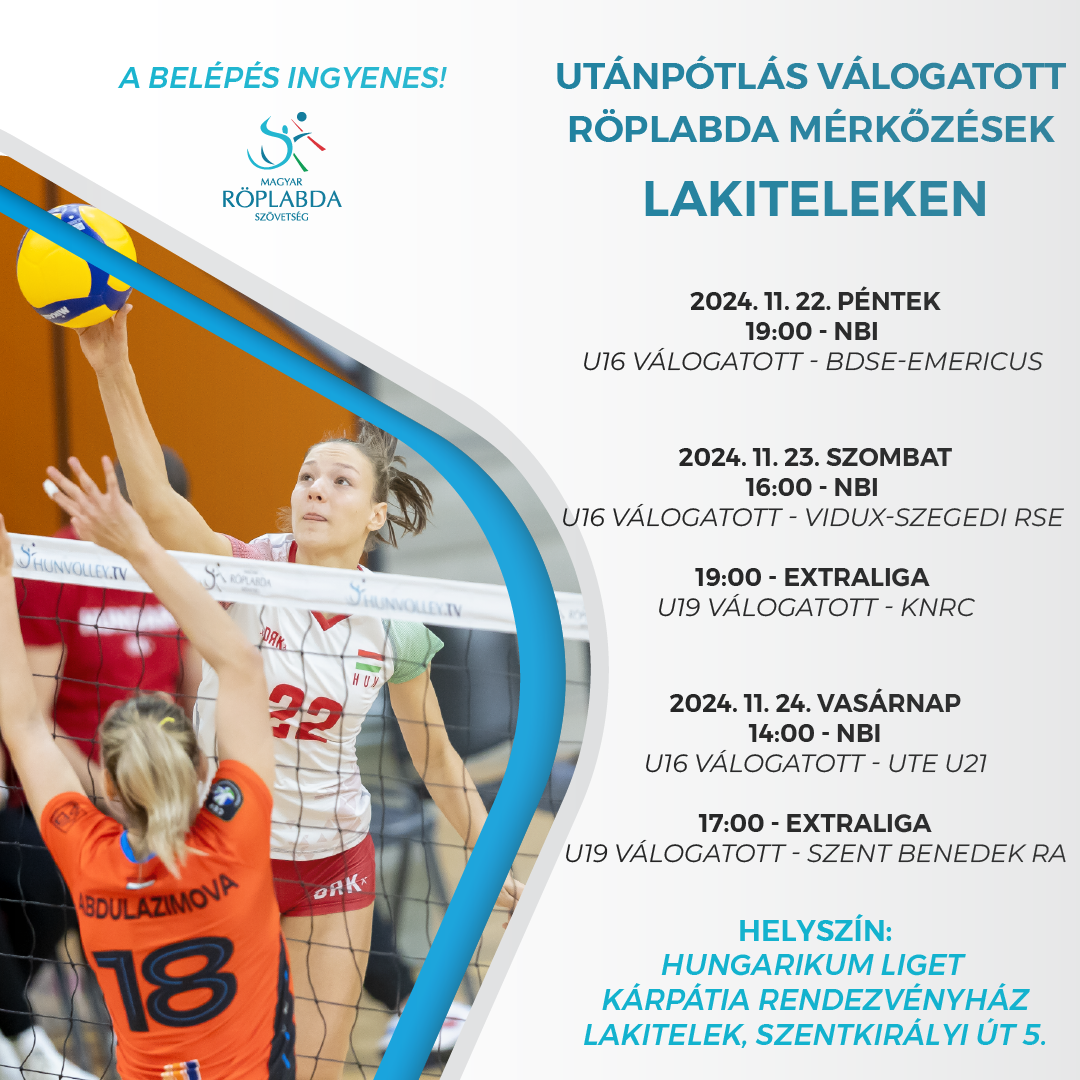 2024. november 22-24. között a Hungarikum Liget - Kárpátia Rendezvényházunk ad otthont a női U16-os és U19-es válogatott bajnoki mérkőzéseinek.